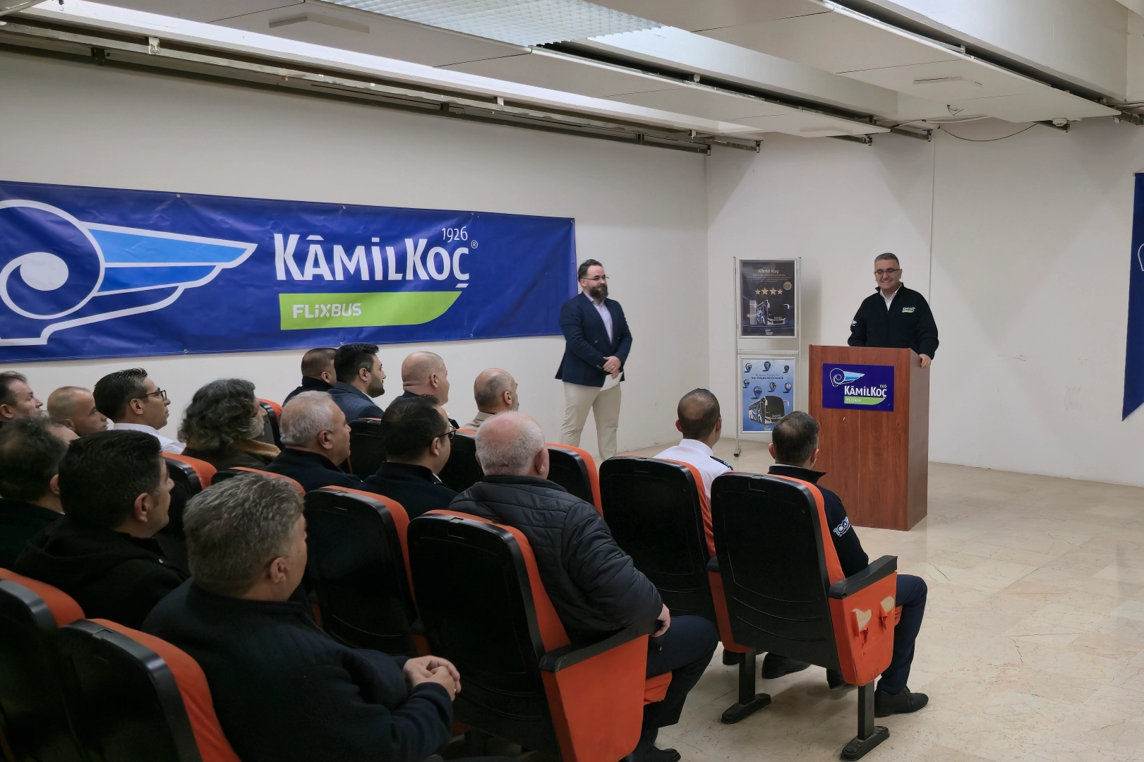 ‘Dünya Şoförler Günü’nde emektar kaptanlarını unutmadı Kâmil Koç çatısı altında görev yapan kaptanlar arasından Türkiye’nin farklı bölgelerinden temsili olarak seçilen yaklaşık 50 otobüs şoförünün katıldığı buluşmada, firma üst yönetimi de hazır bulundu. Etkinliğe aralarında Kâmil Koç Genel Müdürü Çağatay Kepek, Kâmil Koç Otobüsleri İcra Kurulu Üyesi ve Operasyon Direktörü Mehmet Türkyılmaz, İnsan Kaynakları & İdari İşler Grup Müdürü Canalp Büyükuysal, Filo Yönetimi ve Raporlama Grup Müdürü Tayfun Akgün başta olmak üzere yönetim kadrosundan birçok isim katıldı. Yönetim ekibi, kaptanlarla sohbet ederek onların sahadaki tecrübelerini ve görüşlerini dinledi. Buluşmada, ayrıca otobüs şoförlerine günün anlamına özel hediyeler ve teşekkür sertifikaları verildi.