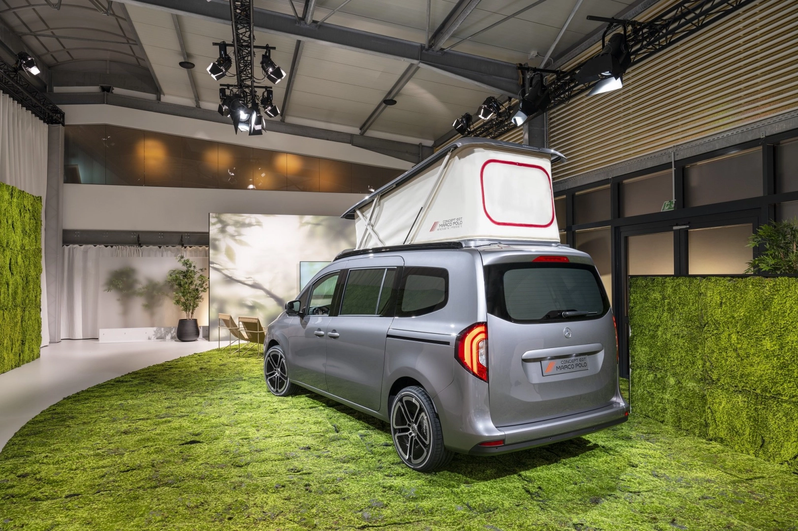 Mercedes-Benz Hafif Ticari Araçlar, stratejisinde elektrikli mobilite konusunda sağlam liderlik hedefleri belirleyerek tüm model serilerini sistematik olarak elektriklendiriyor. Firma, EQT Marco Polo1 konsepti ile, segment için birçok yenilikle donatılmış EQT'ye dayanan yeni, tamamen elektrikli ve tam teşekküllü mikro kampçı hafif ticarinin ilk örneğini kamp severlerle buluşturuyor. Seri üretim versiyonunun 2023'ün ikinci yarısında satışa sunulması beklenen Mercedes-Benz EQT (kombine güç tüketimi (WLTP): 18,99 kWh/100 km; kombine CO2 emisyonları (WLTP): 0 g/km) değerleriyle de dikkatleri üzerine çekiyor. Kendi başına bir ürün kadar yenilikçi olan Marco Polo1, T-Serisi'nin değiştirilebilirliğini, yüksek kaliteli ekipman seviyesini tamamen elektrikli bir sürüşün avantajlarıyla birleştiriyor. Firmadan yapılan açıklamaya göre; Marco Polo1, yakın gelecekte tamamen elektrikli kısa yolculuklar için pratik bir kampçı çözümünün ilk örneği olacak.