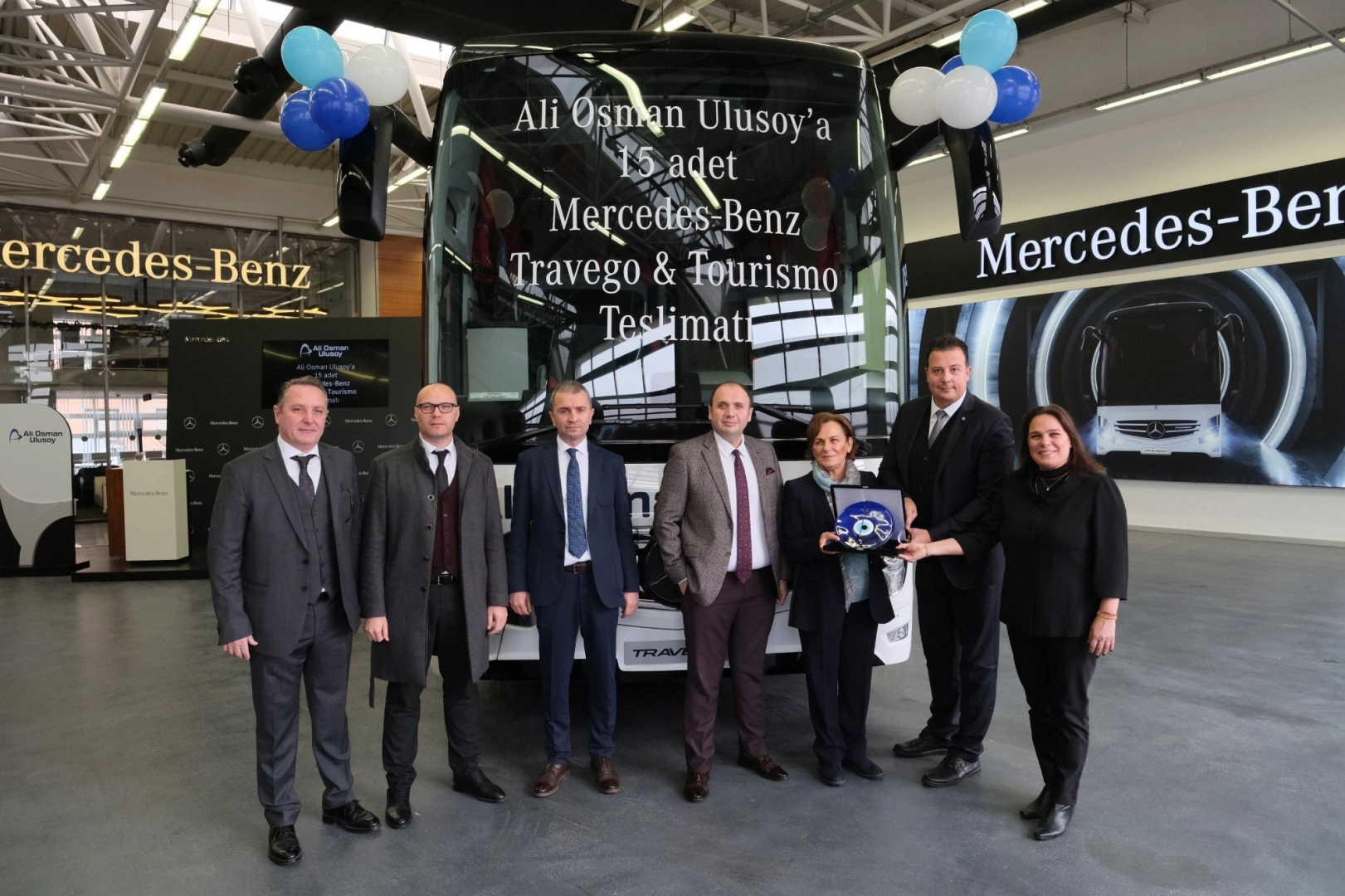 Mercedes-Benz Kamyon Finansman’ın kredi desteğiyle Mercedes-Benz Türk bayisi Hassoy tarafından yapılan satış, 15. otobüs olan Mercedes-Benz Travego 16 2+1'in teslimatıyla tamamlandı. Mercedes-Benz Türk Otobüs Teslimat Holü’nde gerçekleştirilen törene; Ali Osman Ulusoy Şirketler Grubu Yönetim Kurulu Başkanı Hülya Ulusoy, Ali Osman Ulusoy Şirketler Grubu Yönetim Kurulu Başkan Yardımcısı Gülşah Helva, Ali Osman Ulusoy Şirketler Grup Başkanı Murat Seymen, Ali Osman Ulusoy Turizm Genel Müdürü Eray Eray, Ali Osman Ulusoy Turizm İstanbul Bölge Müdürü Murat Çırak, Operasyondan Sorumlu Genel Müdür Yardımcısı Metin Alper Yücel, Mercedes-Benz Türk Otobüs Satış ve Pazarlama Direktörü Osman Nuri Aksoy, Mercedes-Benz Türk Otobüs Filo Satış Grup Müdürü Burak Batumlu, Hassoy Motorlu Vasıtalar Genel Müdürü Selim Saral ve Hassoy Motorlu Vasıtalar Otobüs Satış Müdürü Cenk Soydan katıldı.