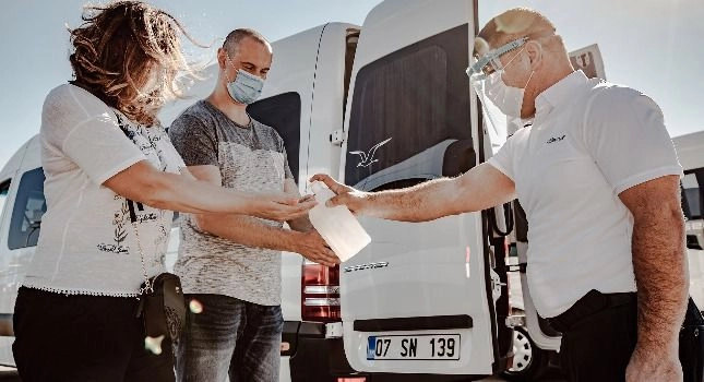 Sosyal mesafe kuralları gereği oturma düzeninin aralıklı olarak yeniden revize edildiği transfer araçlarında, her sefer sonrası azot içerikli dezenfekte işlemlerinin gerçekleştirildiğini açıklayan Necati Çetiner, “Güvenli Turizm Sertifikasyon Programı çerçevesinde, ‘tur ve transfer amaçlı karayolu taşıt işletmelerinde pandemi süresince uygulanacak olan COVID - 19 ve hijyen uygulamaları değerlendirme kriterleri kapsamında gerekli koşulları yerine getirdik. Tüm dünyaca geçerliliği tanınan sertifikanın, COVID - 19 güvenlik kurallarının tam olarak uygulanması sonrası gerçekleştirilen denetim sonucunda verildi. Bu bağlamda araca binmeden önce yolcularımızın ateşlerini ölçüyor, alınan tedbirler hakkında bilgilendiriyoruz. Araçlarımızda görünür noktalarda alınan tedbirler 3 dilde bilgi amaçlı yer alıyor. Biz taşımacılık sektörü içinde araçlarının tamamı için ‘Güvenli Turizm Sertifikası’ alan tek şirket olduk. Yolcularımızın sağlıklı bir şekilde seyahat etmesinden sorumluyuz” dedi.