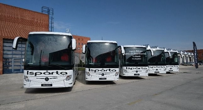 Mercedes-Benz Türk Yetkili Bayii Koluman Ankara’da yapılan satışın ardından 10 Mart Çarşamba günü Mercedes-Benz Türk Genel Müdürlük Kampüsü’nde düzenlenen törende, Isparta Petrol Turizm Yönetim Kurulu Başkanı İbrahim Baştok, Yönetim Kurulu Üyesi Ömer Baştok ve Isparta Petrol Turizm Baş Kaptanı Zeynel Çetin araçlarını, Mercedes-Benz Türk Otobüs Pazarlama ve Satış Direktörü Osman Nuri Aksoy, Otobüs Filo Satış Grup Müdürü Burak Batumlu, Mercedes Benz Türk Otobüs Müşteri Hizmetleri Grup Müdürü Özgür Taşkın, Mercedes-Benz Finansal Hizmetler Satış ve Pazarlama Direktörü Uğur Erdinç, Otobüs Filo Satış Koordinatörü Taylan Özyiğit, Koluman Ticari Araçlar Satış ve Pazarlama Direktörü Ali Saltık ve Koluman Ankara Otobüs Satış Müdürü Hakan Öztekin’den teslim aldı.