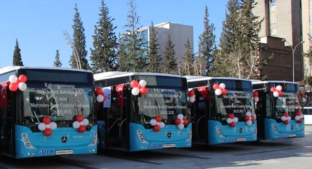Kahramanmaraş Büyükşehir Belediyesi, toplu ulaşım hatlarında kullanılmak üzere 5 adet 2021 model Mercedes-Benz Conecto Solo aracı, Milli İrade Meydanı’nda düzenlenen törenle teslim aldı. Kahramanmaraş halkına hizmet verecek olan Mercedes-Benz Conecto Solo; şehir içi otobüs sektöründe Türkiye’de ilk defa sunulan çarpışma önleyici fren asistanı ve dönüş yardımcısı gibi güvenlik donanımlarıyla fark yaratıyor. Dünyanın en modern otobüs fabrikalarından olan Hoşdere Otobüs Fabrikası’nda üretilen Mercedes-Benz Conecto Solo, tam alçak tabanlı yapısıyla geniş bir iç mekâna sahipken; ekonomik ve çevreci E6 motoruyla benzersiz yakıt ekonomisi sağlayan reküperasyon (geri kazanım) modülünü de barındırıyor. Sadece yeni Conecto otobüslerinde bulunan bu modül sayesinde otobüsün depoladığı enerji, ilave yakıt tasarrufu olarak geri dönüyor. Yangın ikaz ve söndürme sistemi, engelli rampası, otomatik klima sistemi gibi pek çok aksesuarla donatılan Conecto Solo, yüksek güvenlik ve konfor standartlarını bir üst basamağa taşıyor.