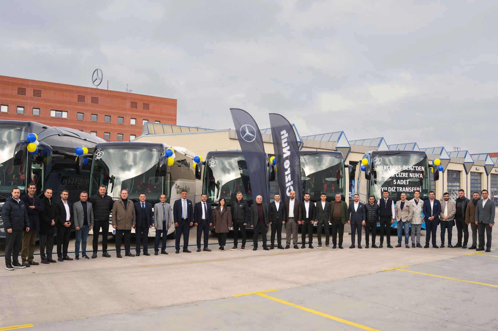 Mercedes-Benz Türk, şehirlerarası yolcu taşımacılığında güçlü iş ortaklarıyla iş birliklerini büyütmeye devam ediyor. Bu kapsamda, bölgenin köklü taşımacılık firmalarından Özlem Cizre Nuh’a 3 adet Mercedes-Benz Travego 16 2+1 ve 2 adet Mercedes-Benz Tourismo 16 2+1 model otobüs teslim edildi. Hoşdere Otobüs Fabrikası’nda üretilen yeni araçlarla birlikte firmanın Mercedes-Benz marka otobüs sayısı 39’a ulaştı. Teslimat töreni, Mercedes-Benz Türk, Özlem Cizre Nuh ve Koluman Gaziantep yöneticilerinin katılımıyla Mercedes-Benz Türk Pazarlama Merkezi’nde gerçekleştirildi.