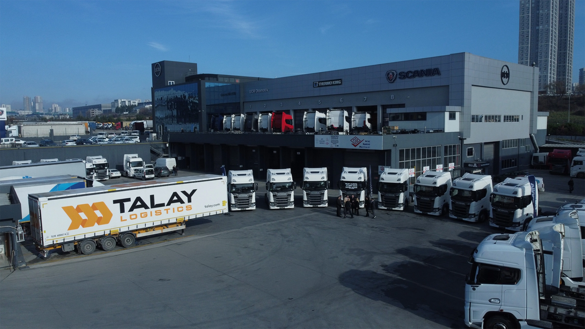 Teslimat törenine; Talay Logistics CEO’su Onur Talay, UCR Otomotiv firma sahipleri Ertuğrul Uçar, Mehmet Ali Uçar, Scania Pazarlama Müdürü Ömer Madazlıoğlu, Scania Pazarlama Yöneticisi Özge Akyıldız Yakan, Scania Bölge Satış Yöneticisi Tayfun Yılmaz katıldı.